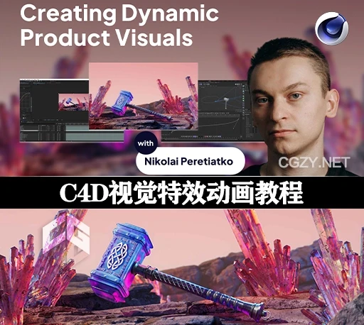 这是一套关于学习Cinema 4D(一种三维建模、动画和渲染软件)和动态产品可视化的教程。该课程旨在为初学者提供一个结构化的学习路径,通过8周的指导和作业,帮助他们掌握动态视频创作的基本技能。