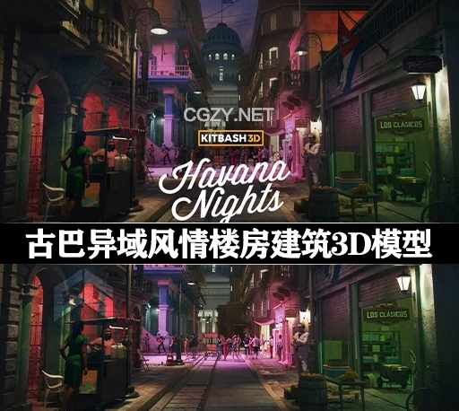 3D模型|古巴异域风情城市楼房建筑模型 Havana Nights (C4D/Blender/FBX/OBJ格式)
