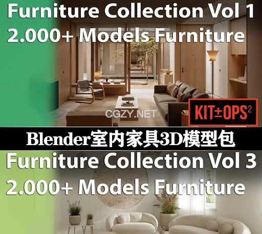3D模型|4023组Blender室内家具桌椅灯床沙发装饰橱柜绿植模型资产预设 Models furniture VOL1+VOL3