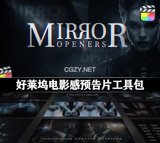 FCPX插件|好莱坞电影神秘感预告片镜像效果标题字幕条动画 Mirror Openers