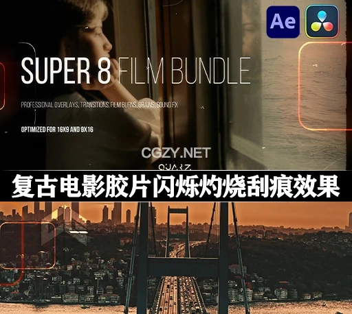 Super 8 Film Bundle for DaVinci Resolve这个模板包包含了8毫米胶片效果和叠加,使你的视频具有复古电影风格。包括各种色彩分级预设、颗粒效果、划痕和污渍的叠加等,轻松给视频添加怀旧的电影质感。