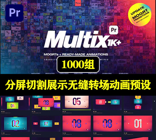 Multix多屏动画元素包是一款为创作者深度优化的After Effects多画面展示模板,内含超过1000组预制动画,覆盖多屏拼贴、多画面切换、拼图式画框、Instagram 内容展示、商务宣传、视频开场、旅行 vlog、时尚短片等多种场景。AE可以使用Mmultix Viewer扩展脚本可视化调用,同时提供AE和PR模板。