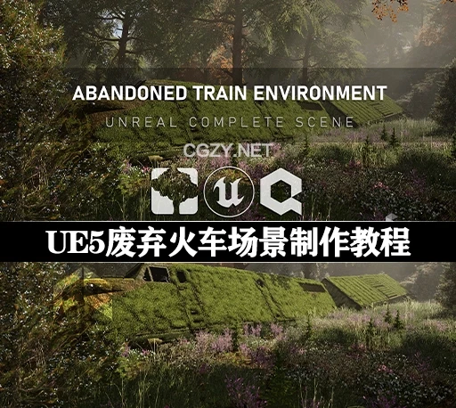 中英文字幕-UE5废弃火车场景自然环境植物树木制作教程 Unreal Complete Scene – Abandoned Train