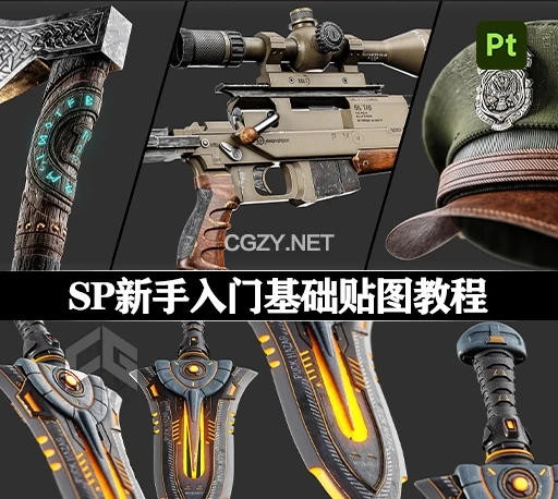 中英文字幕-SP全面入门制作帽子刀斧子狙击枪铁锅空调贴图教程 Artstation – Substance Painter Master Course