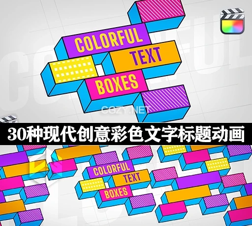 中英双语-FCPX插件|30种现代创意彩色文字标题动画 Colorful Text Boxes