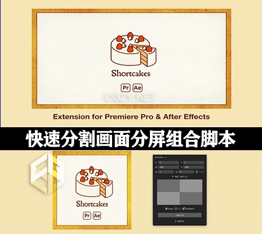 Shortcakes扩展脚本是用于在Adobe After Effects和Premiere Pro中快速创建多画面分屏效果,在时间轴上按照指定的行列数轻松排列视频片段,实现分割画面组合效果。