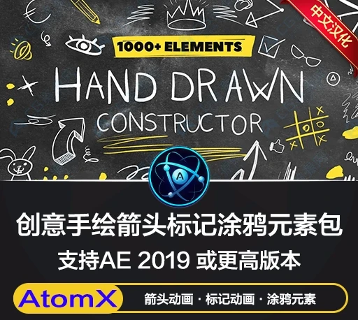 AE脚本|1120个创意手绘涂鸦艺术箭头漫画插画线条标记数字表情符号场景标题背景视觉元素包 AtomX Hand Drawn Constructor