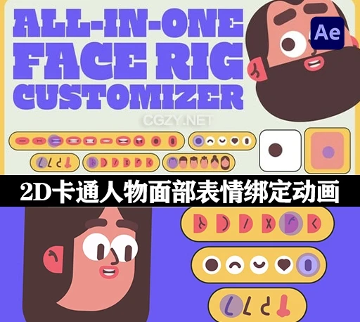 这是一个专为角色设计和面部表情动画打造的2D面部绑定(Face Rig)AE模板,具有高度自定义的功能。你可以通过简单的操作自定义眼睛、鼻子、嘴巴、耳朵、头发的组合,并调整头部形状、大小等特征,适用于动画师和动态图形艺术家。