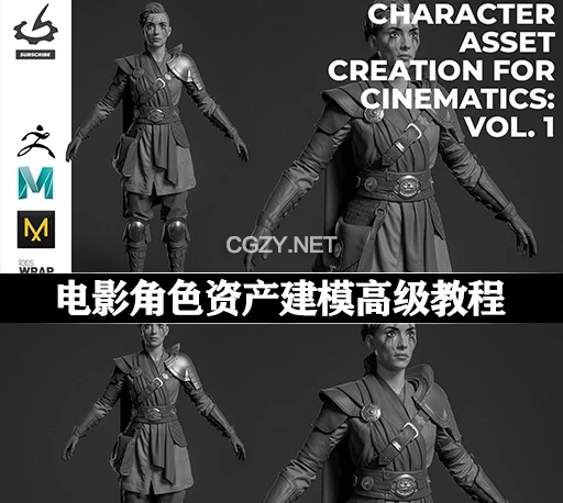 教程使用了ZBrush、Maya和Marvelous Designer等软件,并使用了Texturing.XYZ VFace贴图包和3D Scan Store的女性基础网格。教程时长超过8小时,分多个章节详细讲解了创建角色资产的专业技术和流程。