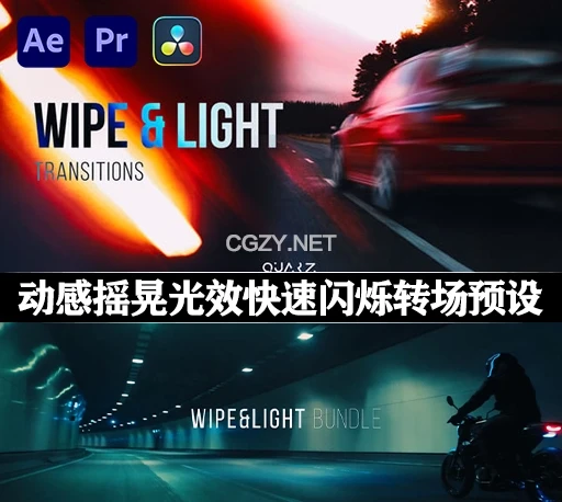 包含50组动感光效快速闪烁转场预设包。模板由Quarz制作,专为需要快速添加视觉冲击力和动感效果的项目设计,特别适合制作社交媒体视频、电影预告、宣传片和动态展示等内容。