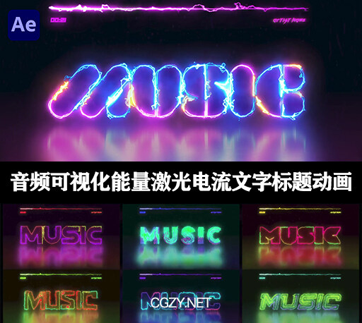 AE模板|音频可视化能量激光电流文字标题动画-Energy Music Visualizer