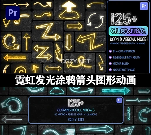 包含63种独特的手绘风格发光箭头动画。带有炫酷的发光效果,非常适合用于强调重点、增强画面趣味或装饰您的视频项目。可以轻松调整箭头的显示时间、颜色、闪烁强度和亮度。