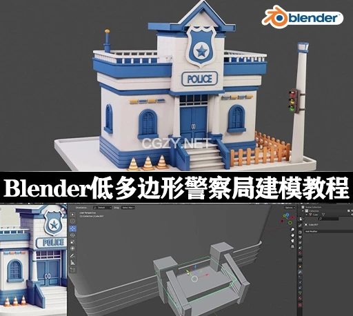 这是Blender 3D创建低多边形(Low-Poly)风格的警察建筑建模教程。课程教授学员如何使用Blender从零开始建模,并最终制作出一个适合游戏和动画的模块化、低多边形警察建筑模型。