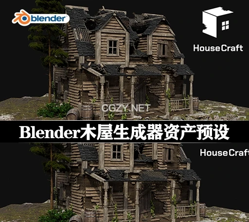 HouseCraft是一款Blender木屋生成器几何节点资产预设,用于快速生成逼真的建筑和破损效果设计。通过几何节点可以轻松创建详细的房屋、结构,甚至整个村庄。可以自定义随机分布和指定位置的窗户、门、烟囱等元素,还支持添加常春藤以营造自然或废墟氛围。