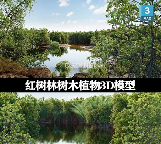Bundle 50 – Mangrove Plants是一个由Globe Plants提供的高精度的红树林植物3D模型包,包含 15 种常见红树林树种和灌木,102个独特、高精度模型,涵盖不同形态、高度和生长阶段。专为红树林相关的景观设计、生态场景和项目制作。3DS MAX格式,支持Vray和Corona渲染器,包含贴图材质