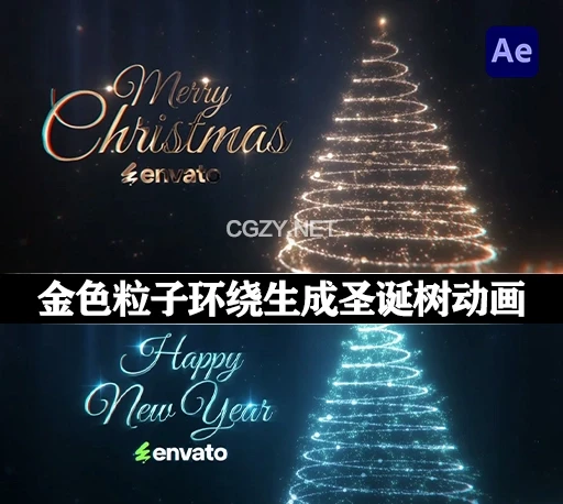 这是一款金色粒子线条缠绕圣诞树节日快乐开场片头AE模板,非常适合圣诞和新年庆祝活动的宣传或开场动画。1个场景、2个标题占位符和1个徽标占位符。