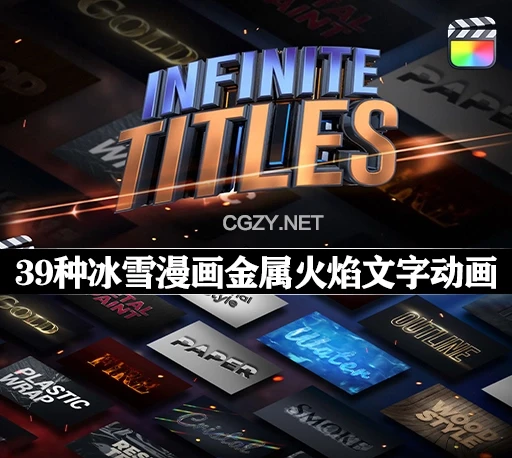 中英双语-FCPX插件|39种冰雪漫画金属火焰材质文字标题动画预设 Infinite Titles