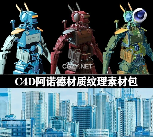 300组C4D阿诺德渲染器建筑卡通手绘艺术游戏科技设计感材质球预设 Arnold Texture Pack