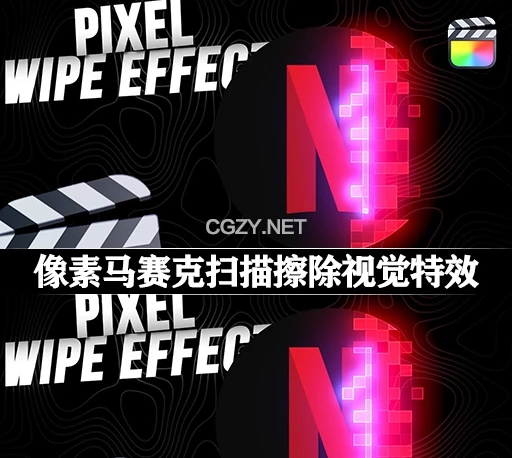 中英双语-FCPX插件|8种像素马赛克扫描擦除视觉特效 Ryan Nangle Pixel Scan Effect