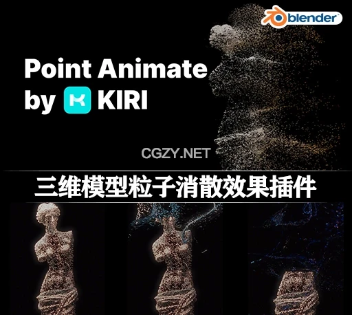 Point Animate by Kiri Engine是一款Blender插件,专为快速创建动态点云动画和运动图形设计。可以在Blender中间三维模型一键转换成粒子消散效果,自定义控制粒子形容、消散的部位等。