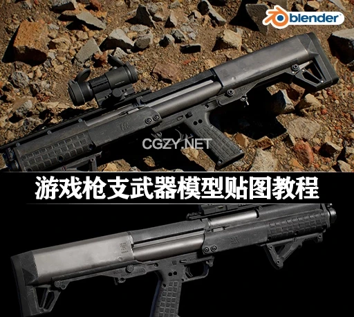 中英文字幕-Blender/SP游戏武器建模贴图完整流程教程 Complete Guide to Creating Game-Ready Weapons in Blender & Substance Painter