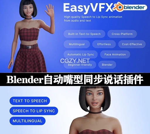 EasyVFX Lip Sync plugin for Blender is the perfect solution for all levels of Blender users, providing a comprehensive universal toolkit that automates the entire lip sync animation process. No more tedious manual adjustments or downloading multiple add-ons to get your project done.