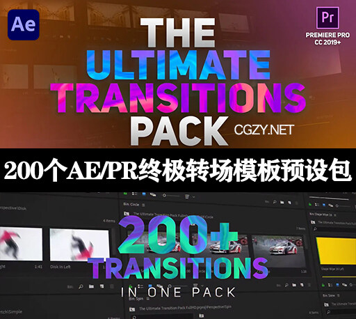 200个优雅光效故障水墨透视图形分割边变形缩放移动转场预设-The Ultimate Transitions Pack