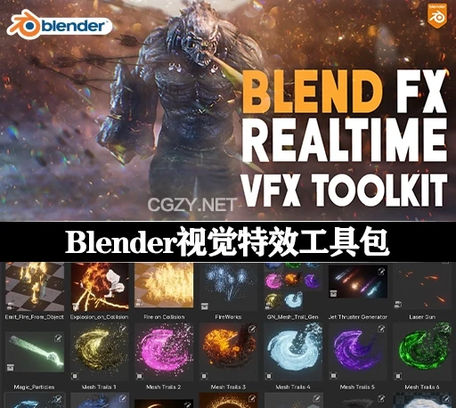 Blend Fx是一套Blender能量拖尾火星粒子射击爆炸游戏特效资产预设,可以在Blender中模拟各种游戏特效效果,比如射箭、火星、爆炸、能量、拖尾、粒子、喷射、龙卷风、传送门等多种效果,安装后在资产浏览器拖拽使用,每个效果都有多种参数可以自定义控制。