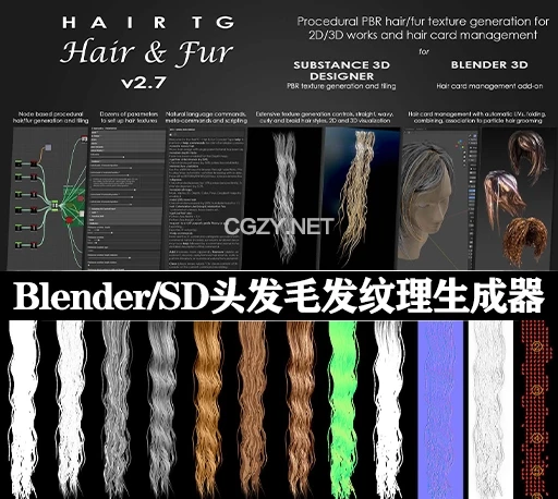 airTG – Hair & Fur is a hair/fur texture generator for Substance 3D Designer (texturing) and a 3D hair card creation add-on for Blender 3.x. It enables to create real-time hair models, both texturing and modeling, based on hair cards. The texturing suite also comes with powerful automation and scripting tools enabling to batch generate or modify sets of textures.