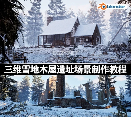 中英文字幕-Blender/UE5三维雪景雪地木屋遗址场景制作教程 Creating Snow Environments For Blender & Unreal +资产工程