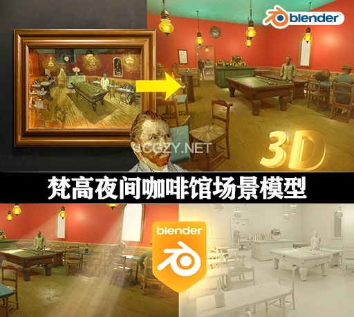 灵感来源于文森特·梵高的经典画作《夜间咖啡馆》。该资源包含完整的3D模型、材质和灯光设置。配套教程学习如何将任意绘画转化为3D场景。