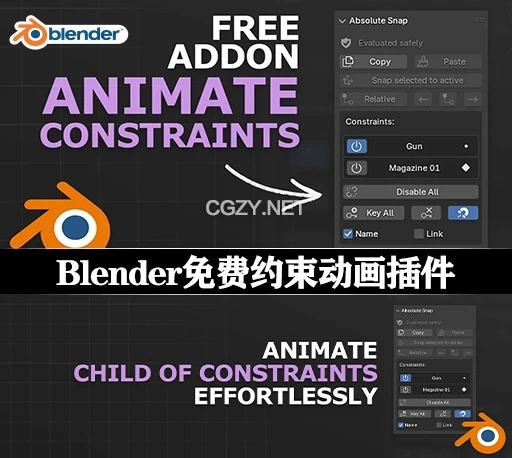 Absolute Snap是一款Blender免费开源插件,简化世界空间内的复制粘贴操作以及“子级约束”的动画制作。插件提供了一系列实用功能:可以复制对象或骨骼的世界矩阵并粘贴到选定目标上,支持约束动画的无缝切换;通过“Snap Selected to Active”快速对齐选择对象;还能存储和应用对象间的相对关系,甚至在前后帧中动态调整位置。此外,它还提供约束管理工具,如一键开关影响、关键帧设置等,极大提升动画工作效率。