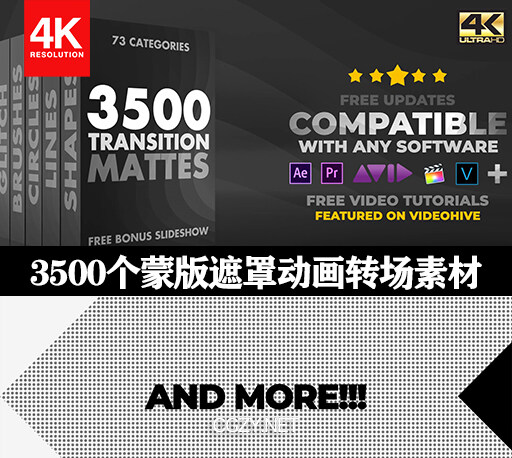 Ultimate Transition Mattes是一套包含3500个多样式多分类的遮罩蒙版格式过渡转场,Mp4格式,兼容任何视频编辑软件,附带使用参考。