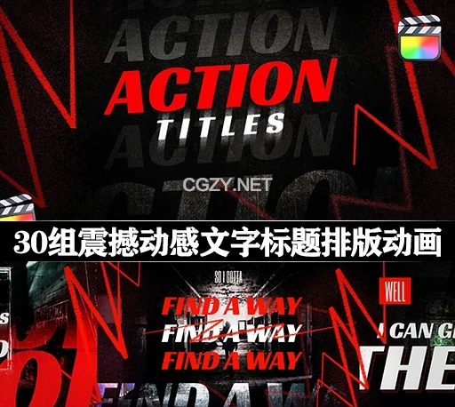 中英双语-FCPX插件|30组震撼动感文字标题排版动画 Action Titles