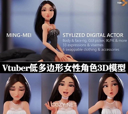 Ming-Mei是一个为Blender 2.91和Vtuber设计的风格化女性角色3D模型,拥有完整绑定(IK/FK切换、表情库等),包括33个表情、6套服装及101张纹理(4K分辨率),支持VR/AR及低多边形应用。模型兼容多种格式(.blend、.fbx、.obj等),含Unity包及VRM文件,适合动画、渲染及Vtuber使用。
