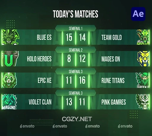 这是个电竞直播套装AE模板,适合CS:GO、PUBG、COD等多玩家竞技游戏的直播、锦标赛和活动制作。包含开场倒计时、锦标赛分组(支持4-16队)、赛程表、排行榜(4-12人)、选手对比、地图池、队伍统计、下方字幕等多种元素。