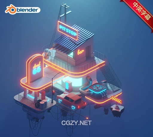 中英文字幕-Blender卡通低多边形场景建模渲染教程 Polygon Runway – Become a 3D Illustrator