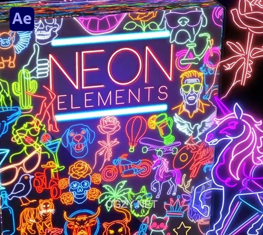 包含100个霓虹灯矢量图标图形动画,类型多样如:动物、食物、心形、骷髅、复古等。