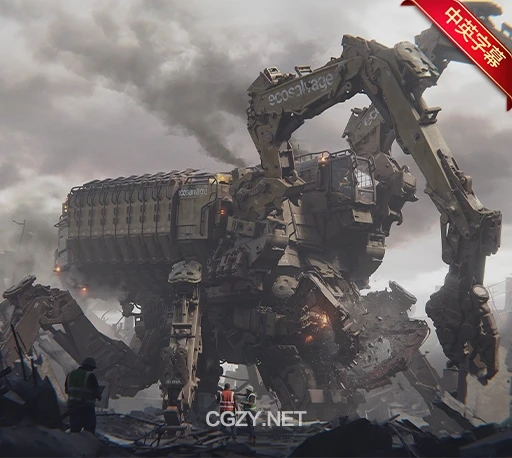 中英文字幕-Blender/PS三维机械机甲设计建模渲染场景合成全流程教程 + 资产工程文件 Vizcom for 3D Kitbash & Design