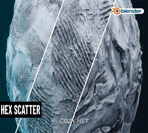 Hex Scatter is a collection of node groups designed to help you scatter texture content around objects, using a variety of techniques such as hexagonal cell distribution, height blending, triplanar / biplanar mapping, random rotation /scale, and normal correction.