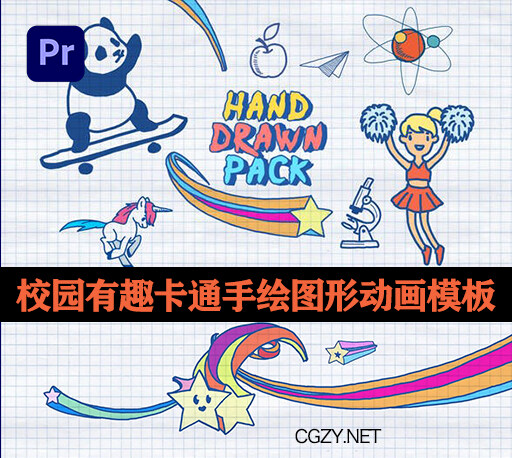 PR模板|快乐校园有趣卡通手绘图形动画 Back to School Hand Drawn Pack