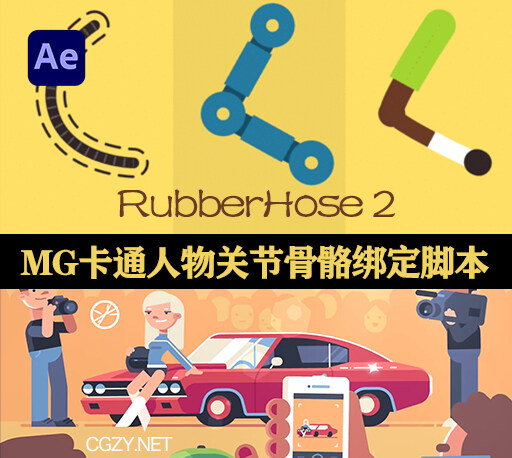 AE脚本-卡通人物关节骨骼绑定联动弹跳MG动画RubberHose v2.11 + 教程(含中/英文字幕)