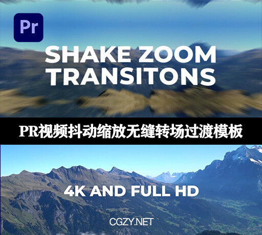视频抖动缩放无缝转场过渡预设Premiere Pro模板下载-Shake Zoom Transitions