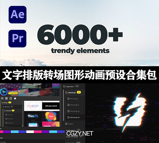 AE脚本+PR预设-6000种社交媒体文字标题排版设计转场LOGO图标MG图形动画合集下载