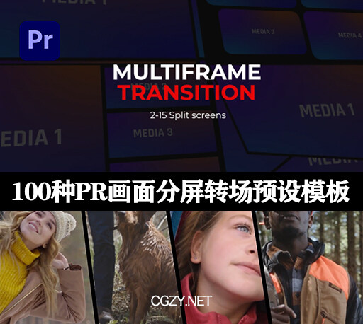PR模板|100种分屏转场预设多屏网格画面组合视频 支持横屏竖屏-Multiscreen Transition