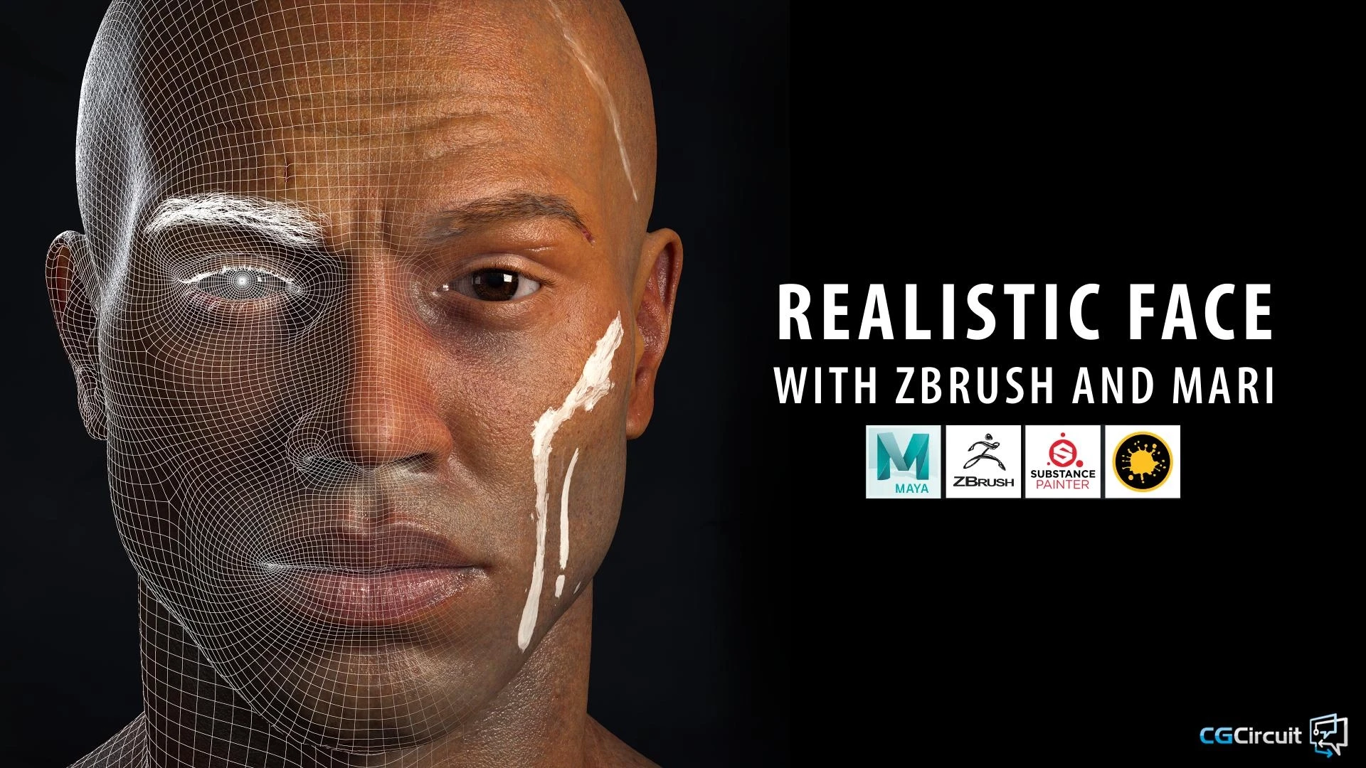 - 教程介绍:将根据真人参考资料和面部解剖学基础来制作面部。在 Zbrush 中完成所有雕刻建模,在 Maya 中完成重拓扑和UV,在 Mari 中使用 XYZ 贴图文件进行贴图,还将使用 Substance Painter 制作一些遮罩
