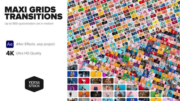 大量照片视频墙展示转场过渡效果AE模板下载-Maxi Grid Transitions Video Wall 4K
