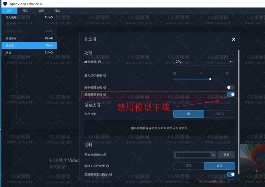第四步:设置禁用模型下载可以快速通过