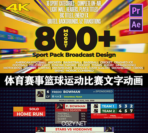 AE/PR模板|体育赛事运动项目竞技比赛VS文字动画-Sport Pack Broadcast Design MOGRT