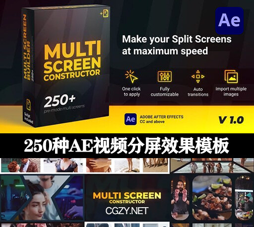 AE模板|250种视频分屏效果生成器-Multi Screen Constructor
